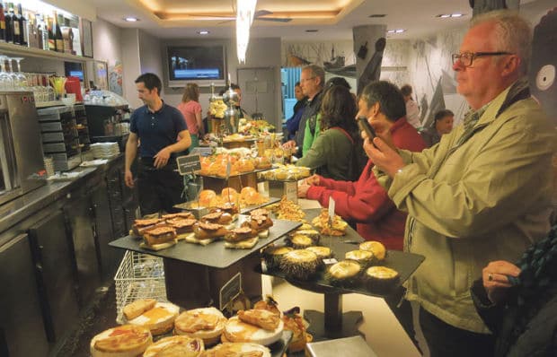 Our guide waved for our attention, then commanded with a mischievous grin, “Watch! See this?” she asked, holding up a used paper napkin. “Here is what you do with it in Spain.” She tossed it with a flamingo flourish onto the floor. She had done it hundreds of times but still enjoyed shocking our American and Australian sensibilities. My wife, Sharon, and I had come to San Sebastián, Spain, to learn, among other things, the Art of Eating Standing Up: the tapas crawl. But the coastal town of San Sebastián is in Basque Country, snugly in the northeast corner of Spain, far from Madrid, and here, the flags that proudly flapped from most buildings are Basque, not Spanish, banners.