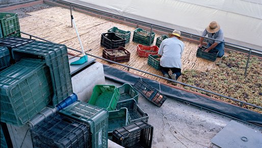 Trabalhadores da Companhia Telmo Rodriguez separam uvas para a produção de vinhos