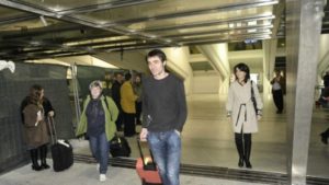 Basque members of Parliament Nerea Antia (Basque Nationalist Party-PNV), Mikel Basabe ( Aralar party in Navarre) and the representative of Aralar at the Parliament of Navarra Nekane Perez, who were detained at the airport of Casablanca (Morocco) are back at the airport of Barajas in Madrid (Spain). (sigue)
