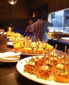 I don’t know my pintxos from my txakoli so I joined a tasting of Basque tapas and wine at Migas restaurant in Nali Patio last night. I have been to Migas for a dinner, a night of drinking with my ex-boss, and The Beijinger anniversary party, and enjoyed myself each time. I like the rooftop (it works for everything from a large party to a romantic rendezvous), the design of the restaurant (although it does come off as a bit cold), and the food (I remember the suckling pig and apple risotto best). (sigue)