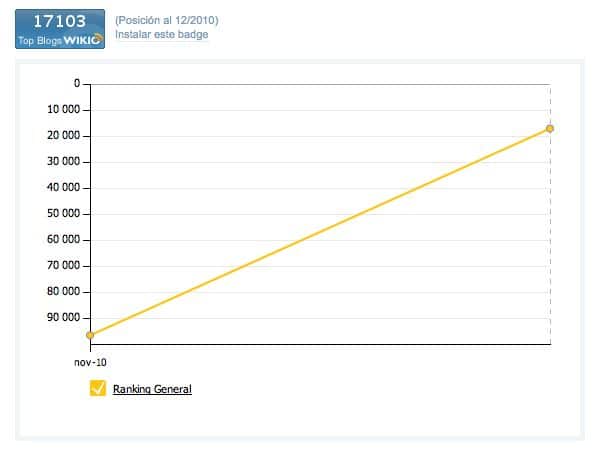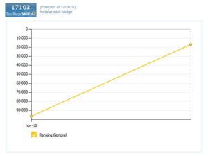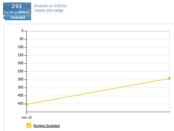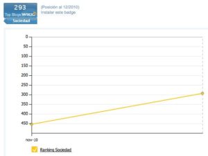 Pues bien, el 10 de noviembre nuestro blog ocupaba un honroso puesto 96.654 en el ranking total de blogs realizados desde el Reino de España. Un puesto que se convertía en el 454 si nos circunscribíamos a los blog del grupo «Sociedad» donde está incluido.