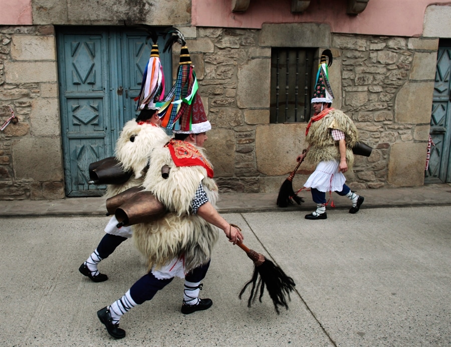 These surreal images caught my eye as I monitored our picture database this afternoon. From Reuters: Every year, villagers from Ituren parade to the neighbouring town of Zubieta, both in Spain, during a festival to welcome the spring after a tough winter in the deep valleys of the northern Navarra region. According to mythical Basque stories, the noise made by the big bells carried by the «Joaldunak,» and scary costumes, ward off evil spirits and give prosperity for a year to the people living in nearby towns. (sigue)