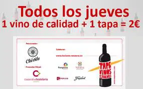 A Associação de Hotelaria de Navarra, comunidade autônoma da Espanha, resolveu apostar na campanha «Tapavinos de los Jueves», que tem como objetivo promover vinhos de qualidade a um preço acessível. Os 28 bares participantes vão oferecer um vinho especial de alto padrão a um preço de dois euros. (sigue)