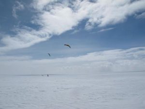 After a slow start, with no wind and heavy snow last week in south Greenland, Alberto Iñurrategi, Juan Vallejo and Mikel Zabala were able to gain miles the past few days in favorable kiting winds. According to the latest report from their home team to ExplorersWeb, the Basques, who started their expedition at Narsaq, are already on the Greenland plateau and in good spirits.