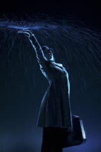 Decir Lluvia y Que Llueva (To Say Rain and Have It Rain) , a visually poetic, deliberately surrealistic dance theater work by Basque troupe Kabia for the Hispanic Theater Festival, presents a dreamlike, confounding world of opposites and absurdities. On Thursday night, in the first of two performances at the Adrienne Arsht Center’s Carnival Studio Theater, a shadow rebels against following his physical master. Time speeds up to gibbering incomprehensibility. Rain falls from inside umbrellas. “