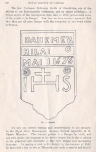 Además hemos encontrado la reproduccion de uno interesante documento, realizado por la Royal Society Of Canada en 1902, que se titula The old Basque tombstones at Placentia. Recoge un estudio sobre tumbas vascas en esta población canadiense. Simplemente…imperdible.