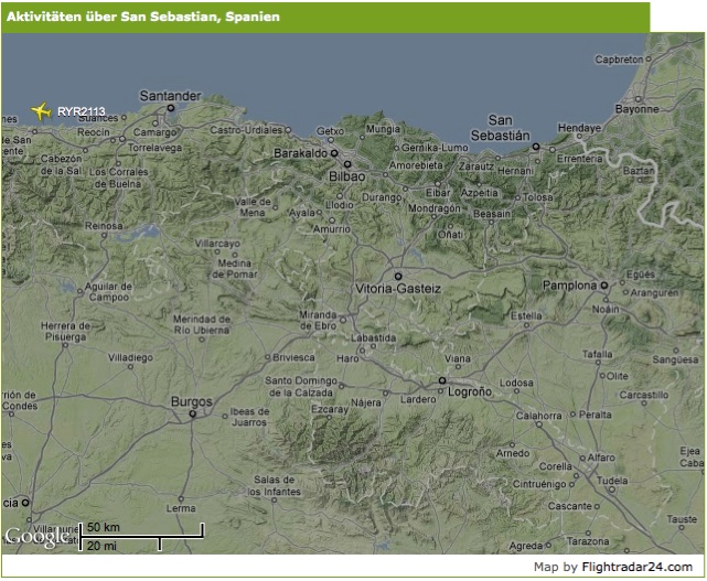 Pero la página alemana Kinkaa, nos lo ha hecho ver de otra manera. Nos hemos encontrado con un enlace que mostraba cuáles eran los vuelos que pasaban cerca del Aeropuerto de Bilbao. Le hemos dado una vuelta, y escogiendo como centro el aeropuerto de Hondarribia, tenemos una visión general de los cielos de Euskadi. De forma que entrando en este enlace, podemos ver qué vuelos, de qué compañía, qué modelo de aparato, de donde y hasta donde, son los aviones que vuelan sobre nuestras cabezas, en tiempo real.