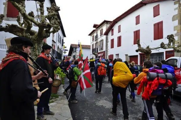 Salieron de la ciudad fronteriza de Sale para una marcha de varias horas en los Pirineos con el fin de llegar a Lesaka, en Navarra, donde esperan «ser 3.000» el sábado en la noche y asistir a un mitin político y un concierto.