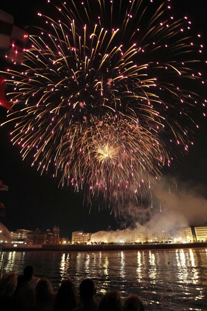 Vista de la colección de la pirotecnia valenciana Cavaller, ganadores de la última edición del Concurso Internacional de Fuegos Artificiales de la Semana Grande de San Sebastián y encargados de cerrar la competición de esta edición. EFE/Javier Etxezarreta.
