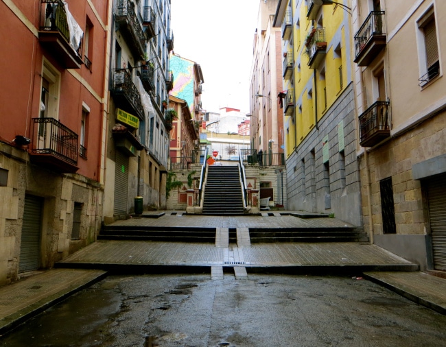 Although Bilbao’s inner city districts of Casco Viejo, Indautxu, Abando and Iralabarri are overwhelmingly respectable in character, San Francisco and La Vieja, just to the south-east of the railway stations, are more edgy because this is where some alcoholics, drug dealers, drug addicts, pimps, prostitutes and petty criminals hang around in shadowy bars, cafes and night clubs and on street corners. But San Francisco and La Vieja are also vibrantly multi-ethnic areas where people from South America, Central America, North Africa, sub-Saharan Africa, the Middle East and Eastern Europe live because housing is cheaper than in other parts of the city. Shops, small supermarkets, cafes and restaurants, some of the latter alcohol-free with halal food for Muslims, meet the needs of people from about fifty different countries.