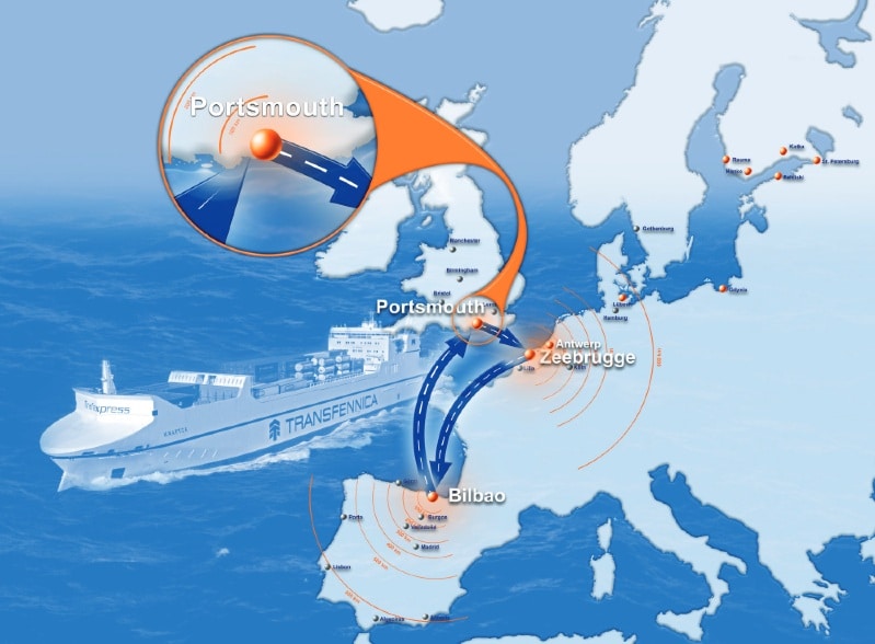 La compañía alemana de transporte marítimo Transfennica acaba de inaugurar, hace escasos días, una nueva línea que une el puerto vasco de Bilbao, el puerto inglés de Portsmouth, y el puerto belga de Zeebrugge. los buques saldrán dos veces a la semana de Bilbao (miércoles y viernes) con destino al puerto inglés para pasar posteriormente por Zeebrugge y volver a Bilbao. Los buques que ha encargados de este servicio de transporte de mercancías , permiten transportar contenedores y trailers, ofreciendo incluso la posibilidad de acoger a 12 conductores de camión en el viaje.
