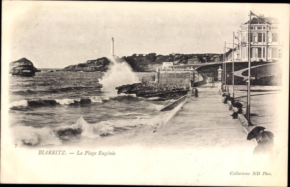 Biarritz La Plage Eugenie, Blick auf den Leuchtturm (akpool)
