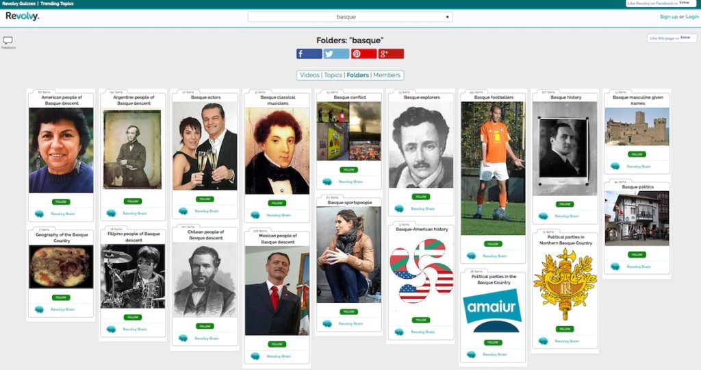 Les dejamos el referencia de este listado en Revolvy. Pero les recomendamos que hagan una búsqueda del termino «basque». Van a sorprenderse del numero de «colecciones» relacionadas con los vascos. Los resultados de la búsqueda serían estos.