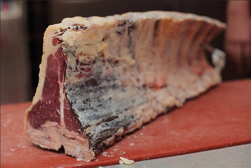 Cuenta cómo esta carne, el txuletón de las sidrerías que tanto les gusta a los vascos, proviene de «vaca vieja». Utilizar la carne de vacas o bueyes con muchos años no es una práctica habitual fuera de Euskadi y es una de las cosas que más desconcertó en principio a este experto y distribuidor e Alemania de carnes de calidad. Él denomina esta carne como carne de la Gran Mu, en referencia a la edad de los animales. Cuando la probó en 2013 le resultó extraordinario cómo pudiera tener esa calidad y sabor.