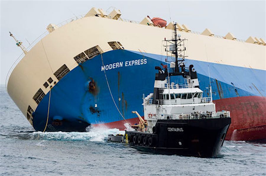 Estos días los medios de comunicación de medio mundo (como mínimo)  están hablando del buque de bandera panameña «Modern Express» que después de estar una semana escorado y a la deriva en el Golfo de Bizkaia cuando se dirigía a al puerto francés del Havre, ha sido remolcado, casi cuando llegaba a las costas francesas, al Puerto de Bilbao.