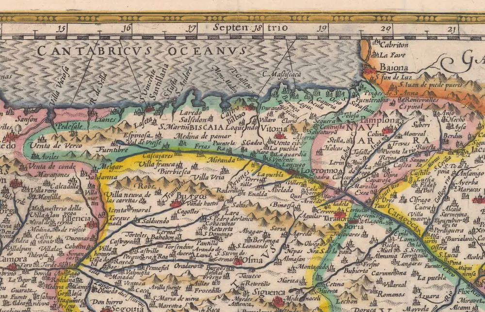 La nueva confirmación es de algo que nos hemos ido encontrando en mapas de la época a lo largo de estos años: la inclusión en aquellos años del centro y la parte oriental de la actual provincia de Santander en Bizkaia y de la occidental en Asturias.
