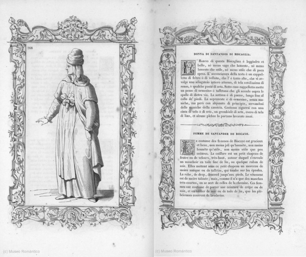Resulta muy revelador ver como una de las ilustraciones, en las que se representa a una santanderina con un traje de la época. está titulado como «Donna de santandos de Biscaglia«. Lo que en castellano viene a significar «mujer de Santander de Bizkaia».