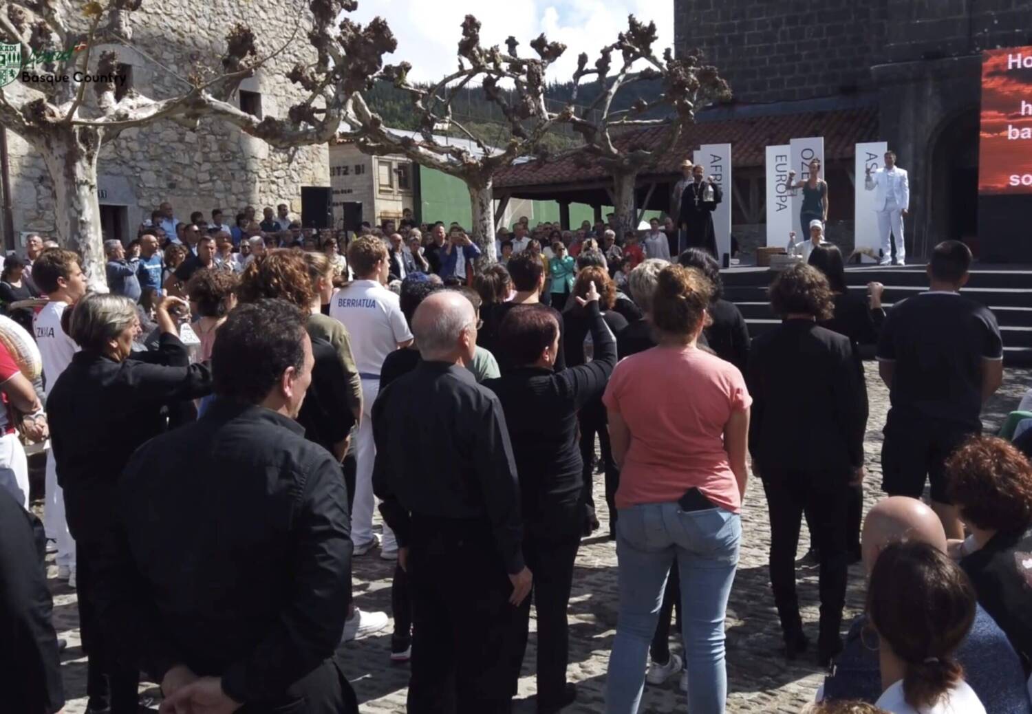 No sabíamos qué nos esperaba en este día, pero sí sabíamos que iba a ser algo muy especial. Y así fue. El acto central giró en torno a una representación en la que se teatralizaban las distintas razones por las que se ha ido alimentado la diáspora vasca en todo el mundo con los hijos de nuestra nación.
