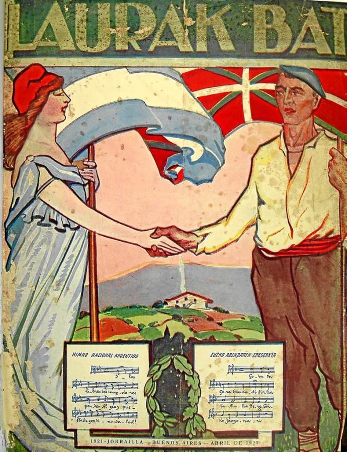De esto nos habla Álvarez-Gila en este artículo, en el que nos cuenta cómo una institución vasca, El Laurak Bat de Buenos Aires, tomó, en abril de 1921, la decisión de asumir que la Ikurriña representaba a todos los vascos, y la importancia que esta decisión tuvo.