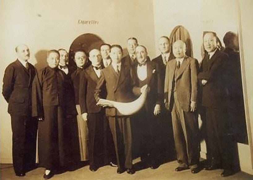 Mei Lan Fang (梅兰芳) en el Forum de Tianjin sosteniendo una chistera.