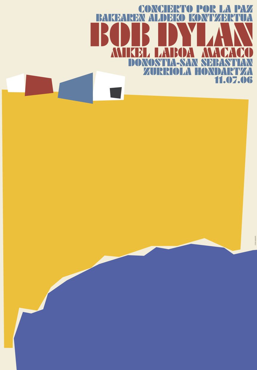 2006 machte Bob Dylan plötzlich wieder im Zusammenhang mit einem „Friedenskonzert“ Schlagzeilen. Von der „Musikwoche“ bis zur „Jungen Welt“ las es sich ungefähr so: „Musiklegende Bob Dylan engagierte sich im baskischen Friedensprozess. Er trat bei einem kostenlosen Konzert gemeinsam mit dem im Baskenland berühmten Sänger und Songschreiber Mikel Laboa am Sandstrand von »La Concha« (die Muschel), der Bucht von Donostia (San Sebastian) auf.“ Und: „Das Konzert war nach der Ankündigung einer ‚dauerhaften Waffenruhe‘ der baskischen Untergrundbewegung ETA am 22. März ins Programm genommen worden.“ Und weiter, typisch Dylan: „Einzige Bedingung von Seiten Dylans war, dass während des Konzerts am Zurriola-Strand der baskischen Hafenstadt keine politischen Botschaften verlesen werden durften.“