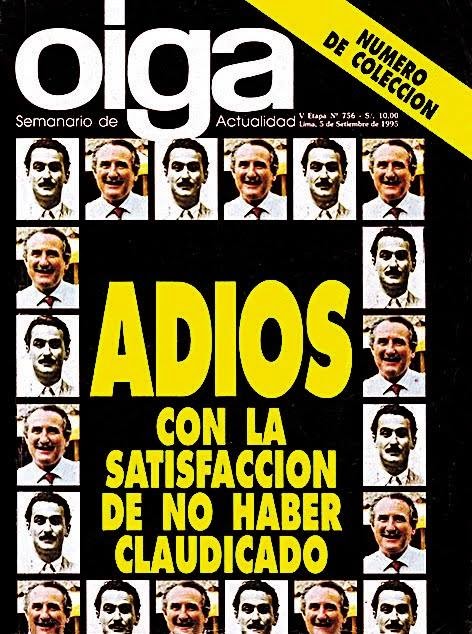 OIGA ya no volverá a aparecer. La cierra, no obliga a auto silenciarnos, el acoso que la revista viene sufriendo desde hace diez años. He tomado esta decisión en consulta con mis asesores más cercanos, principalmente con Jesús Reyes, quien me viene acompañando casi desde el día –hace 33 años— que retomé la aventura de OIGA, iniciada en noviembre de 1948, como respuesta de mi generación al cuartelazo del general Odría contra el presidente Bustamante y Rivero, el hombre que inútilmente intentó que este país de desconcertadas gentes entendiera el valor de la democracia, de la cultura cívica, del acatamiento al imperio de la ley y no al mandón de turno.