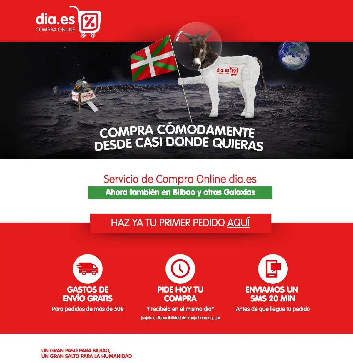 Then, yesterday, we saw another ad on a website for the DIA supermarket chain, explaining that their online shopping option was now available in Bilbao.  To launch it, they created an “Euskalburro a la Luna” (Basque-donkey to the Moon) campaign, with two videos on the YouTube channel of the same name.