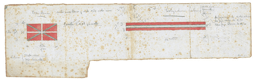 Original design of the ikurriña, drawn up by brothers Sabino and Luis de Arana y Goiri.