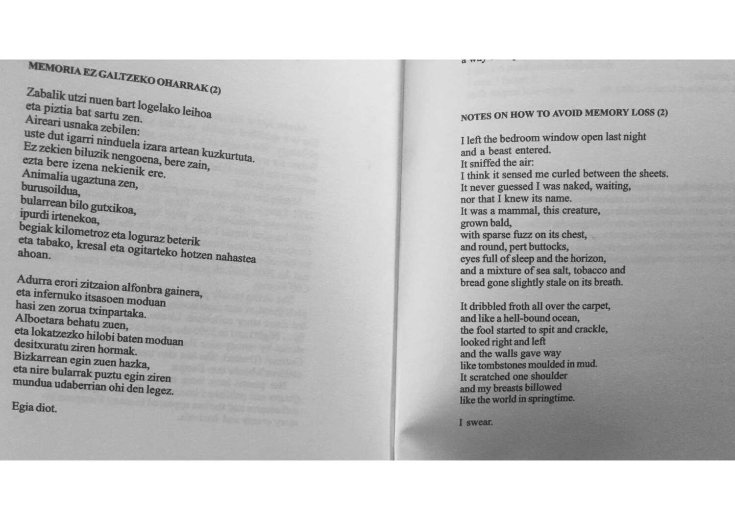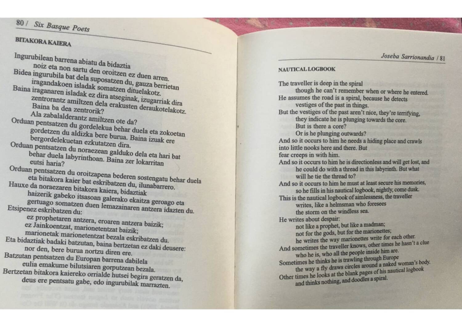 This last entry was supposed to be made up of just two poems, one by Felipe Juaristi and another by Joseba Sarrionaindia, but the author decided to include a bonus track. As she explains: