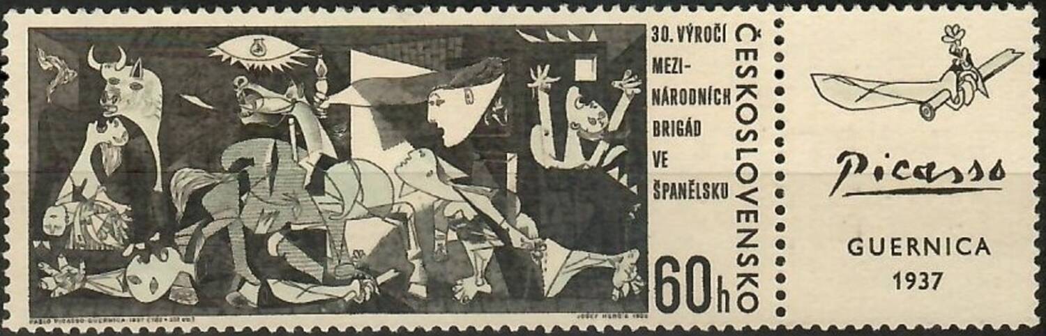 Czechoslovakia issued a stamp reproducing the Guernica in 1966. This was met with a degree of controversy, as it was issued in commemoration of the 30th anniversary of the International Brigades in Spain, which the Franco government did not like at all, leading to the decision that any letters which arrived in Spain with that stamp would be returned.