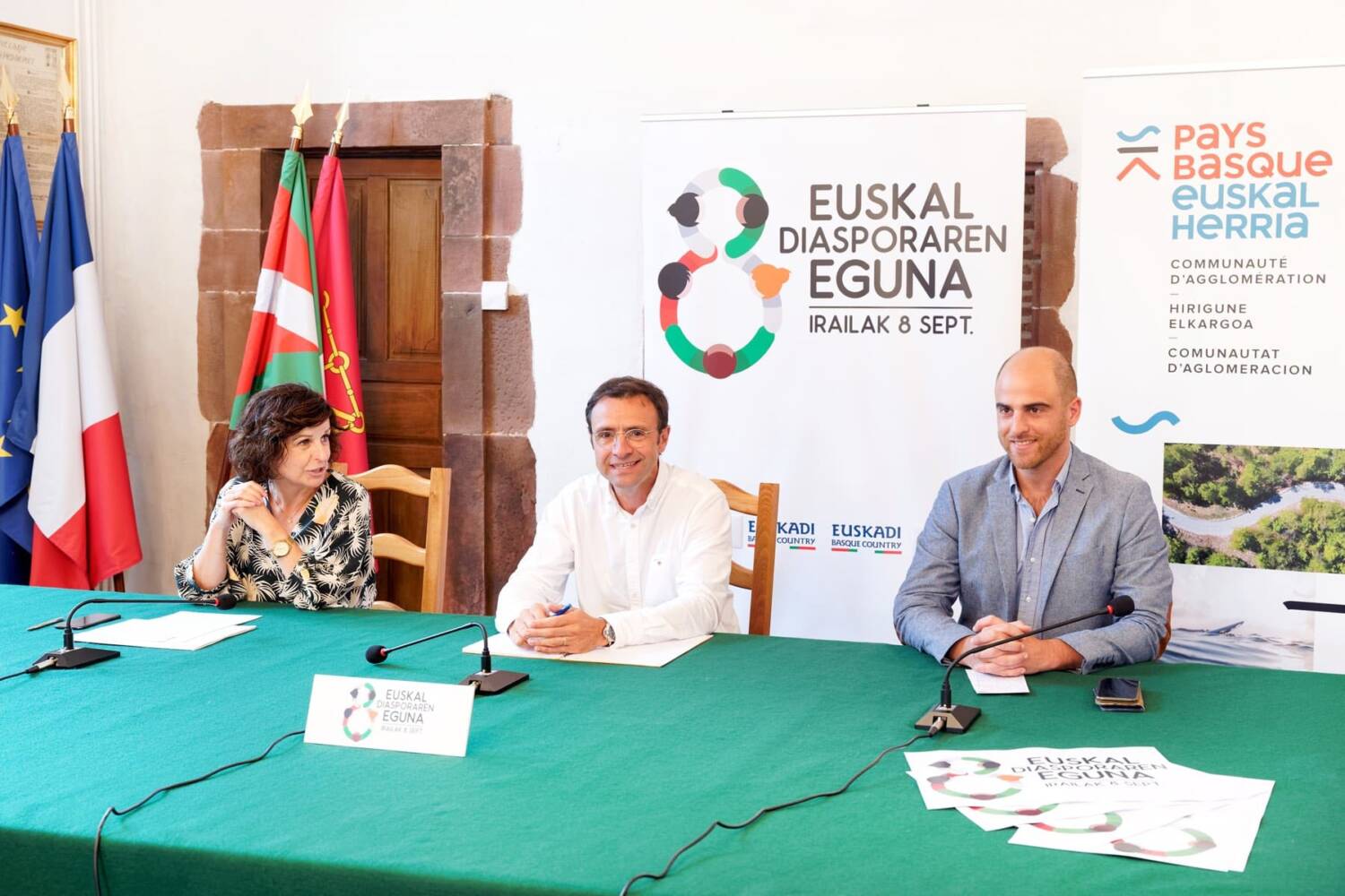 Esta mañana, la Secretaria General de Acción Exterior del Gobierno Vasco Marian Elorza, el Consejero Delegado de Cooperación Transfronteriza, Europea e Internacional de la Comunidad de Aglomeración del País Vasco, Joseba Erremundeguy, y el Alcalde de Donibane GaraziLaurent Inchauspé han presentado el acto institucional que se celebrará en esta localidad el próximo 8 de septiembre, con motivo del Día Internacional de la Diáspora Vasca.