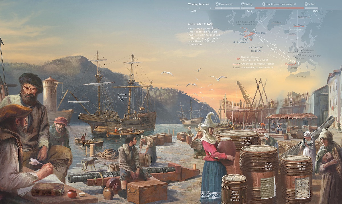 Told in four stages (preparation, voyage, hunting, and the San Juan itself), this work by Fernando G. Baptista (a man from Bilbao we’ve spoken about before), Riley D. Champine, Eve Conant, Patricia Healy, Shizuka Aoki, and Elijah Lee helps us understand the epic nature, the organization, and the economic importance of this activity. And we don’t say “economic importance” lightly: a fully-loaded ship like the San Juan could return with a load worth $10 million in 2018 money.