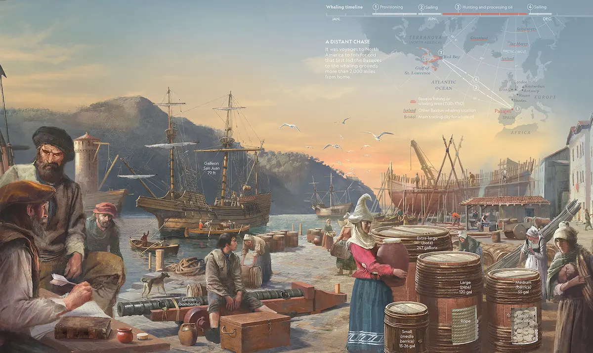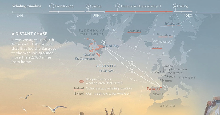 National Geographic, a detail about other places in the North Atlantic where Basques went whaling (2018/8)
