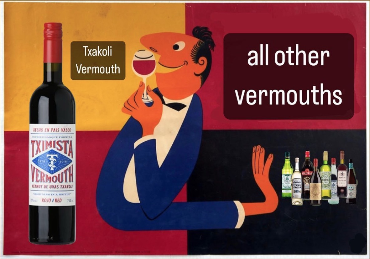 The latest variation of the Bamboo, also on the Punch website, is in an article by Mary Anne Porto, with the adjective “Basque” in front. Why? Well, because it’s made with a vermouth made of hondarribi zuri grapes called Tximista Vermouth and being presented as Txakoli Vermouth.