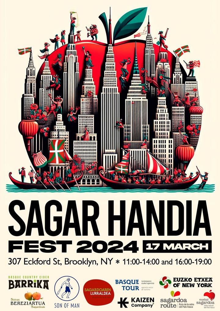 And today the Big Apple (Sagar Handia in Basque) is back in the news because the Basque company Kaizen (which, as they explain, is made up of 18 young entrepreneurs who are driven to change the world) is going to celebrate a festival of Basque culture and Basque cider at the Basque Center in New York.