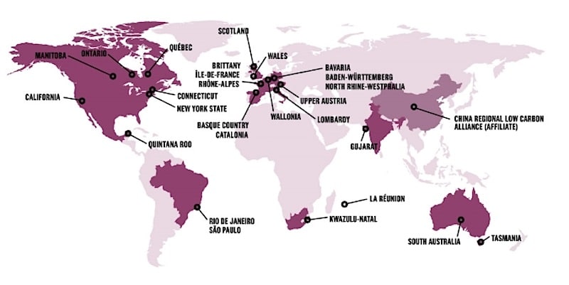 Aliantza hau eratzen duten gobernuak hauek dira: Baden-Württemberg, Basque Country, Bavaria, Brittany, California, Catalonia, Connecticut, Gujarat, Ile-de-France, KwaZulu-Natal, La Réunion, Lombardy, Manitoba, New York State, North Rhine Westphalia, Ontario, Quebec, Quintana Roo, Rhone-Alpes, Rio de Janeiro State, Sao Paulo State, Scotland, South Australia, Tasmania, Upper Austria, Wales and Wallonia.