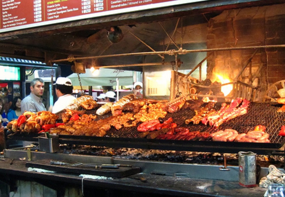 Llegando a Montevideo, Uruguay, no podes perderte el mercado del puerto. Vieja estación de tren rumbo a Chile y dejada en Montevideo, al pasar de los años se armó con dicha estructura el mercado, que ofrece un sin fin de comercios de gastronomía típica de parrilla de carnes , (achuras entrañas de vacunos y lanares ) pescado, y verduras a la brasa.