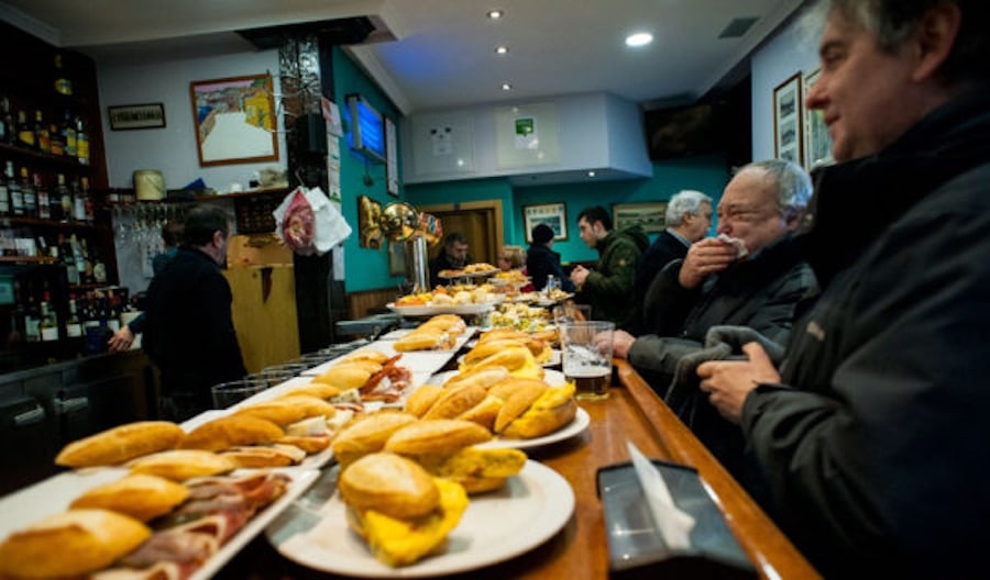 The streets are nearly empty. As light cascades down cobbled thoroughfares, dog walkers shield their eyes and market-goers tow their rickety carts toward Mercado de la Bretxa.